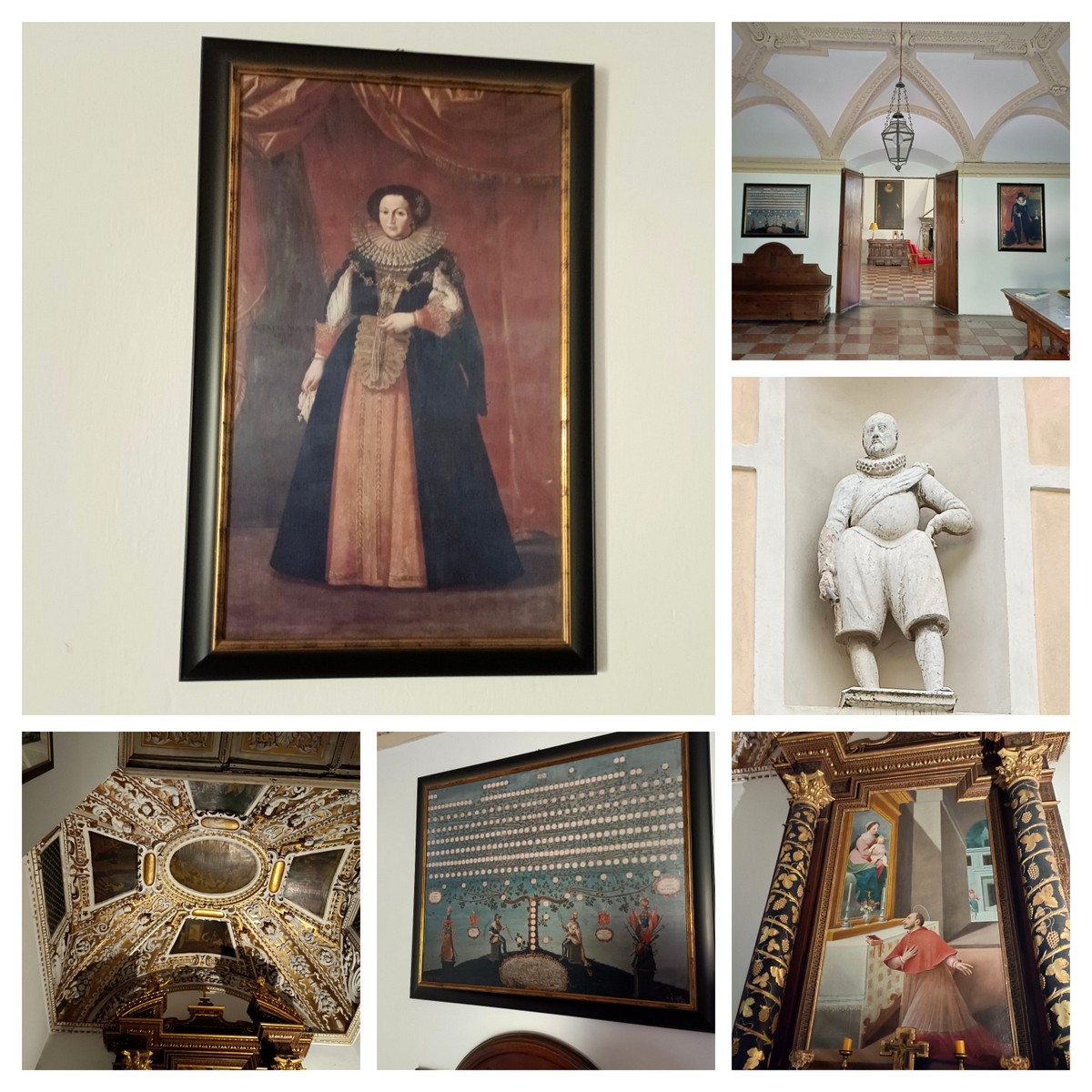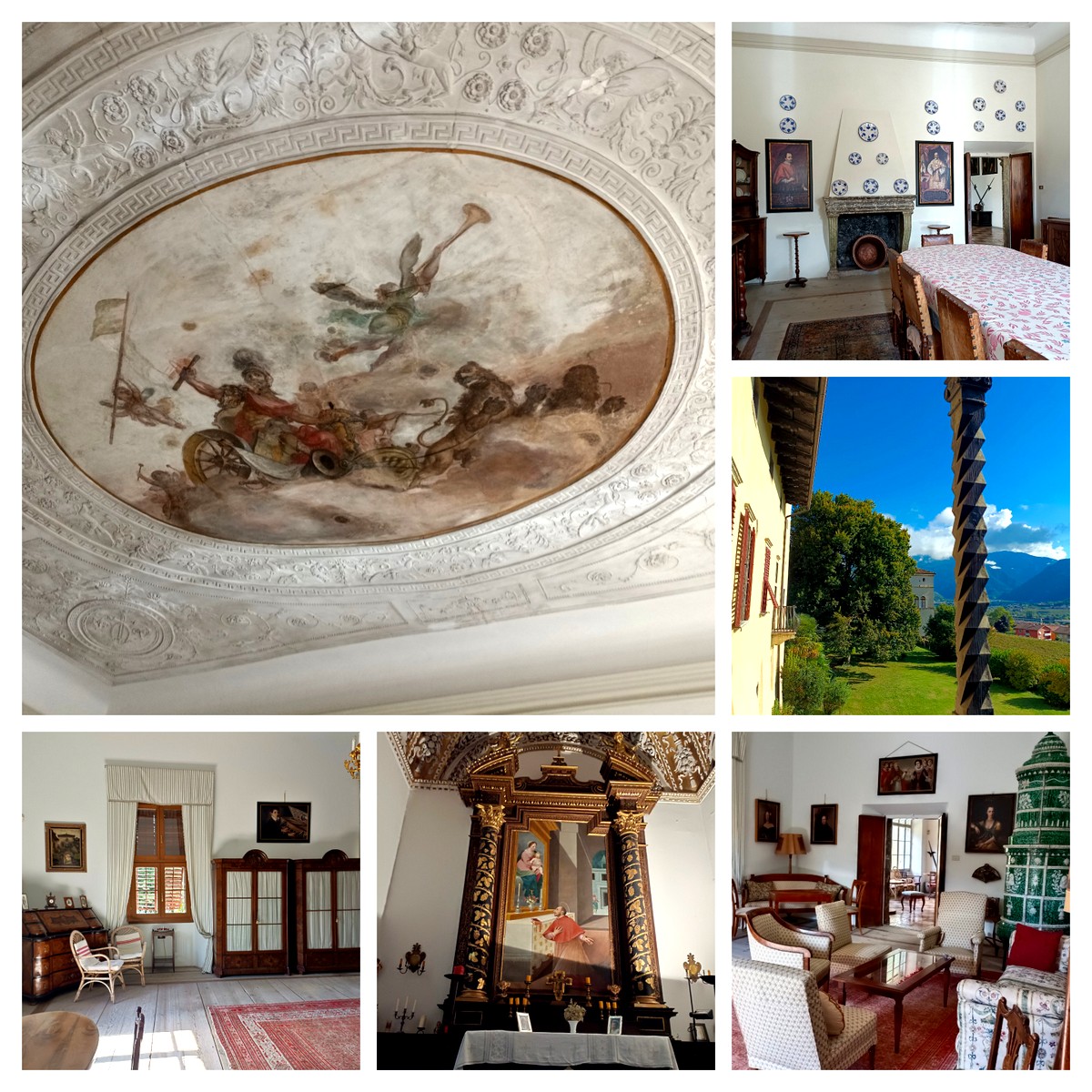 Tele d'epoca con l'albero genealogico dei Lodron accolgono il visitatore. Nell'ampio ingresso si apre la Cappella di famiglia che il Principe Arcivescovo di Salisburgo Paride Lodron fece decorare e impreziosire da altari con fregi dorati, stucchi e dipinti.
