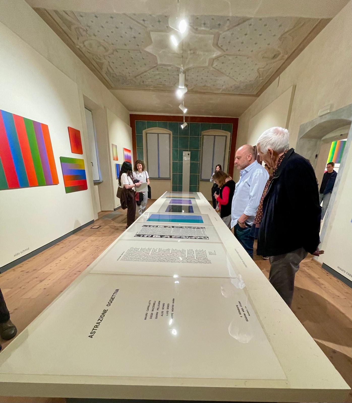 Nel cuore del racconto espositivo, il sodalizio nato nel 1976 con i sei artisti trentini del gruppo di Astrazione Oggettiva: Mauro Cappelletti, Diego Mazzonelli, Gianni Pellegrini, Aldo Schmid, Luigi Senesi e Giuseppe Wenter Marini, di cui quest'anno ricorre il cinquantenario.