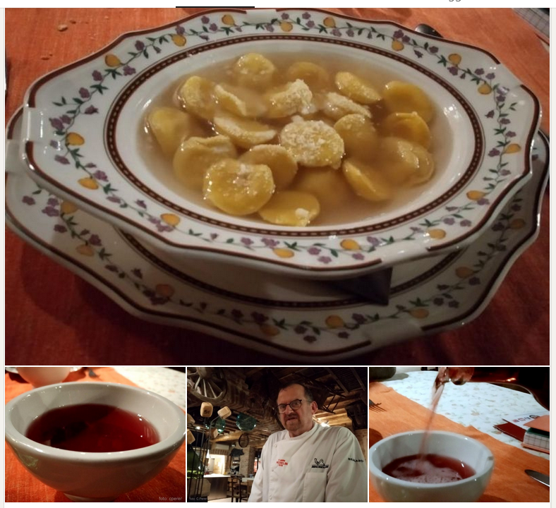 Ma è la tradizione che sta a cuore a Spigaroli, il quale ama offrire il buon Tamburen rosato IGT prodotto nelle vigne dell'Antica Corte Pallavicina in un modo che stupisce. Non in un calice: nel parmense il vino si degusta in tazza nelle osterie tradizionali. E' magico se accompagnato agli anolini in brodo dello chef con ripieno il parmareggio dop. Parlare di maiale da queste parti, mentre magari si degusta il vino in tazza - come si usa fare nel parmense - è incrociare la tradizione dei Masalén, i norcini che tramandano l’arte della corretta macellazione del maiale.