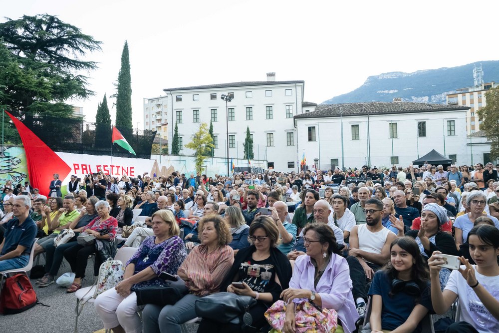 Alzare la voce, rompere il silenzio, non rimanere fermi a guardare ma provare, attraverso la cultura, la musica, la presenza dei corpi a non lasciare solo il popolo palestinese: con questo spirito ieri nel tardo pomeriggio 500 persone si sono riunite nel cortile dell’Oratorio Rosmini ad abbracciare simbolicamente la band Radio Gaza per il concerto di anteprima di Oriente Occidente.