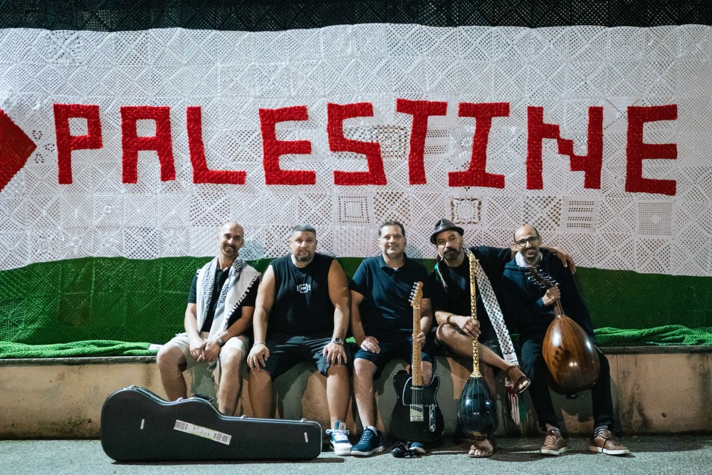 Radio Gaza ha suonato per un’ora e mezza, raccontando storie e facendo ascoltare a Rovereto la sua musica: quella di un neonato collettivo che ha fuso storie, generi musicali e che dal palco porta una grande testimonianza di resistenza. A fare da scenografia bandiere palestinesi, bandiere della pace e la grande opera del gruppo di donne di Castel Tesino, che hanno ricamato all’uncinetto una enorme bandiera palestinese grazie a 1400 ore di lavoro.