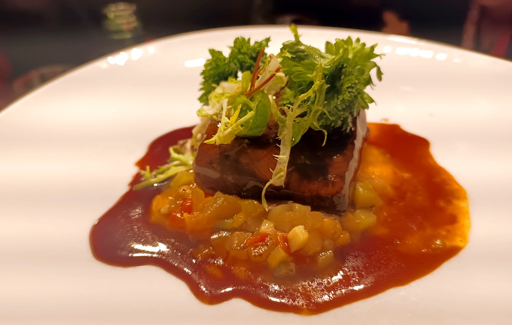 Carne di Bufalo su chutney di verdurine e salsa di pomodoro