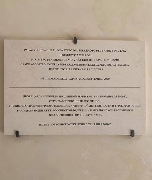 foto: MAXXI, la targa che ricorda la cooperazione russa per la ricostruzione
