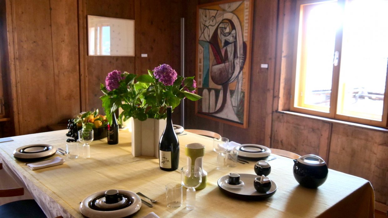 La tavola nella stube, è stata riallestita in veste estiva per l’occasione (dopo il successo delle precedenti anteprime invernali).