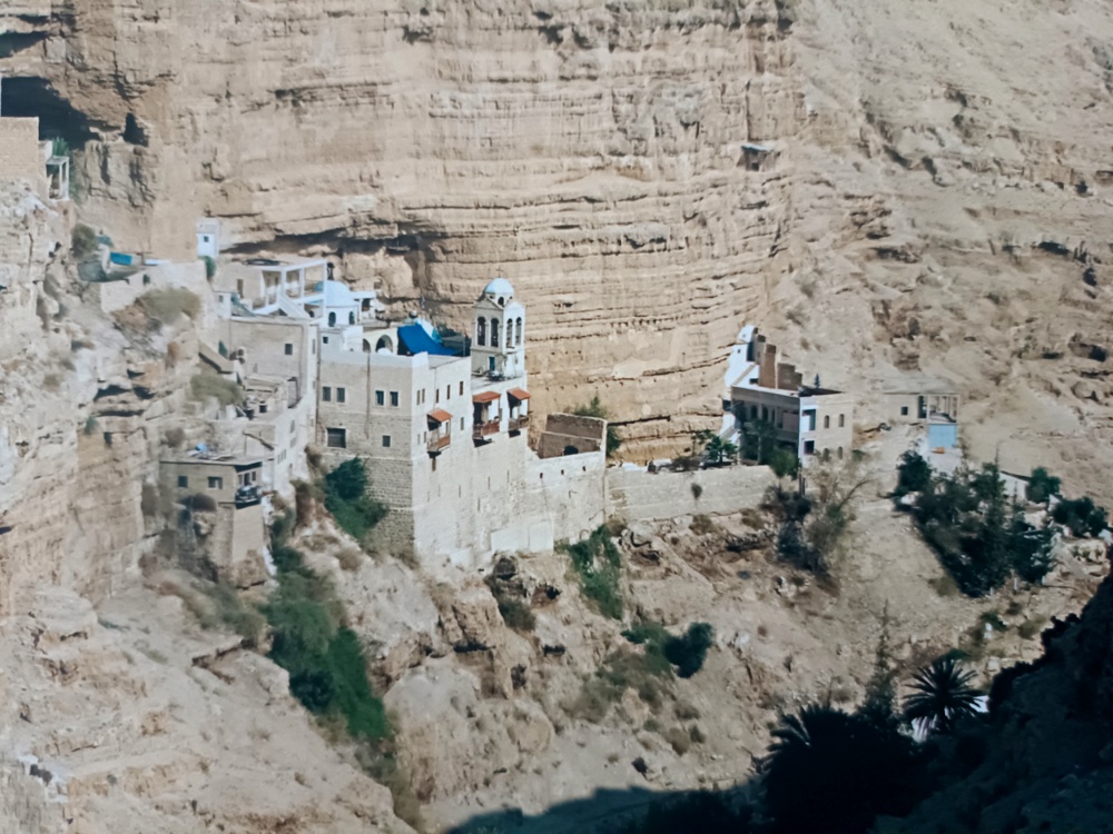 Nella piana assolata di Gerico, tri torvi in faccia al Monte delle Tentazioni di Cristo e davanti alle rocce dove è incastonato il monastero Ortodosso di San Giorgio.
